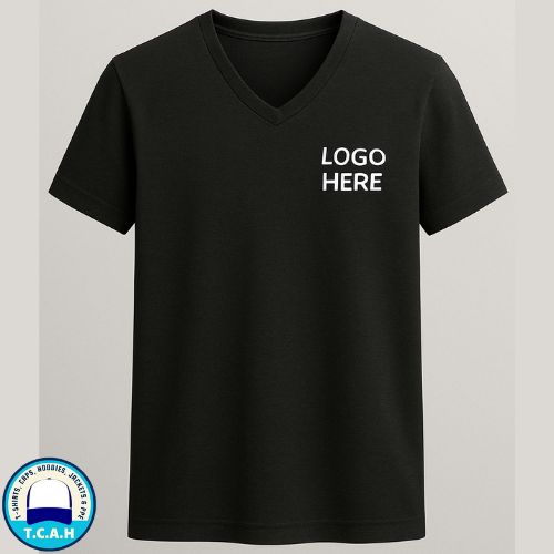 Upgrade your team or promotion with our branded V-neck t-shirts featuring your custom logo. Sleek, comfortable, and professional.